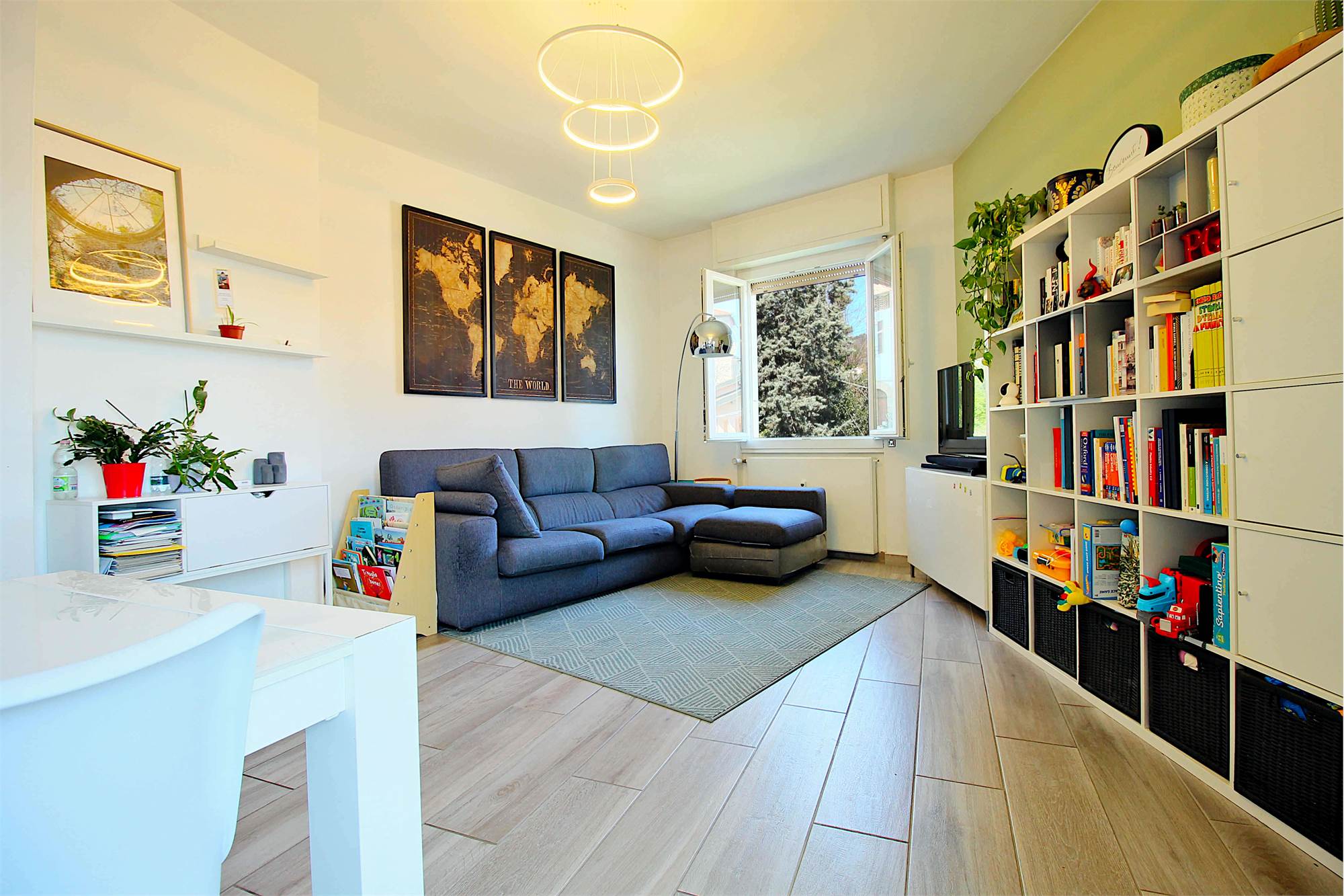 San Fermo della Battaglia: in contesto residenziale degli anni ’70, luminoso trilocale ristrutturato con box e balcone panoramico.