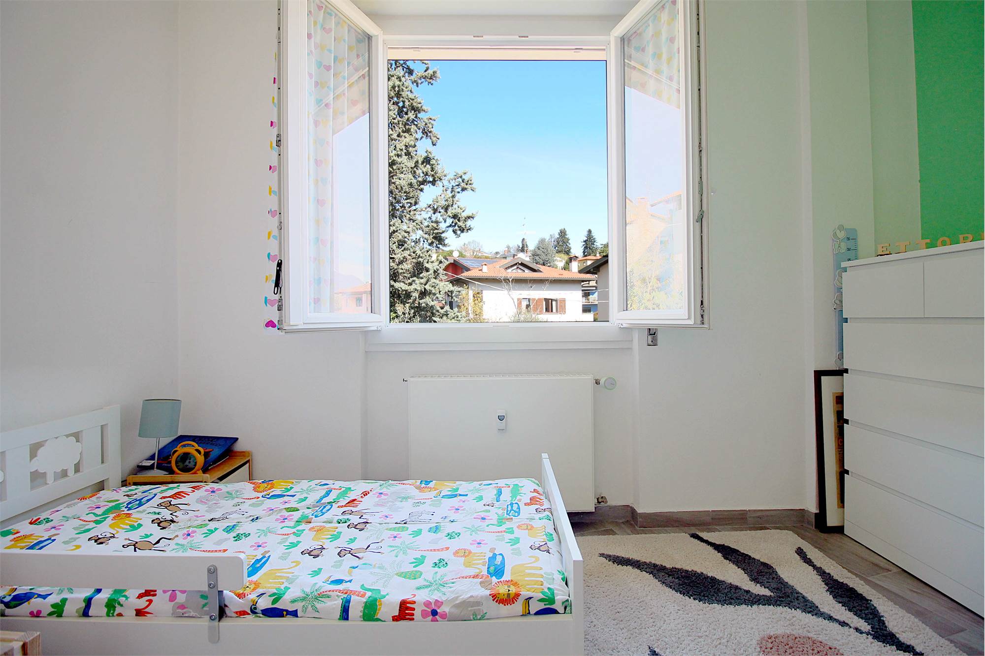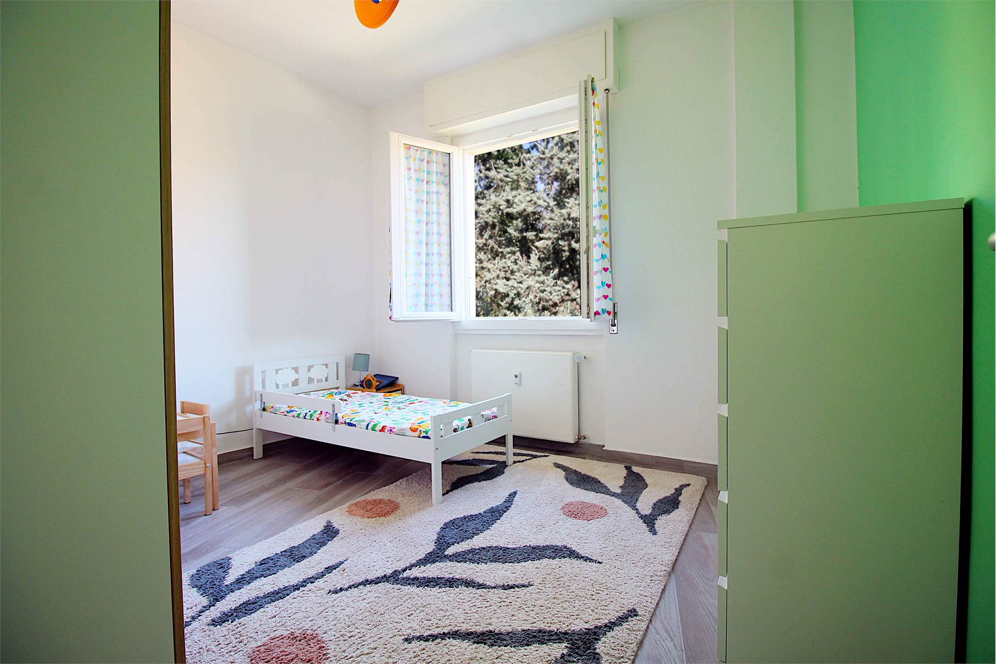 L’appartamento si distingue per la luminosità e per l’atmosfera accogliente, con spazi ben distribuiti che comprendono ampio disimpegno, soggiorno, cucina, due camere da letto e bagno. Il balcone, con vista aperta, rappresenta un valore aggiunto ideale per momenti di relax.